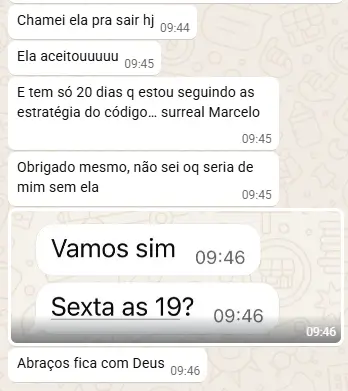 Com o Código de 21 Dias, você vai aprender, passo a passo, como reacender o interesse da mulher que um dia escolheu estar ao seu lado.
