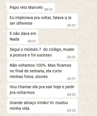 Se você aplicar certo, ela começa a enxergar você de forma diferente e a reavaliar a decisão que tomou.